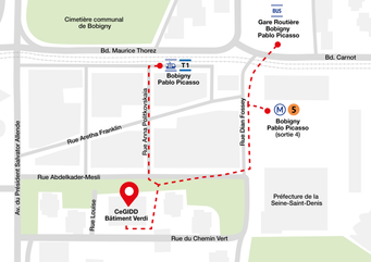 Se rendre au CeGiDD : Métro : ligne 5, arrêt Bobigny-Pablo Picasso Tram : ligne 1, arrêt Jean Rostand